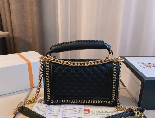 CHANEL Quilted LeBoy Black Leather Shoulder Bag Handbag With Antique Gold Hardware